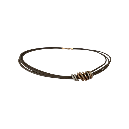 Noor Diamond & Leather Necklace – 18 Kt Rose Gold Loop Model