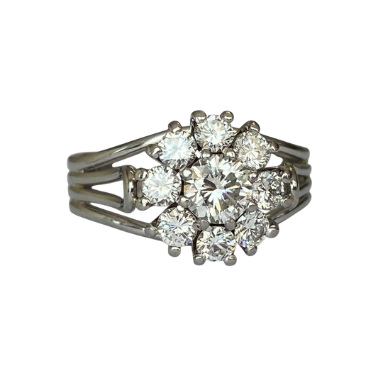 18K Vintage White Gold Rosette Cocktail Diamonds Ring