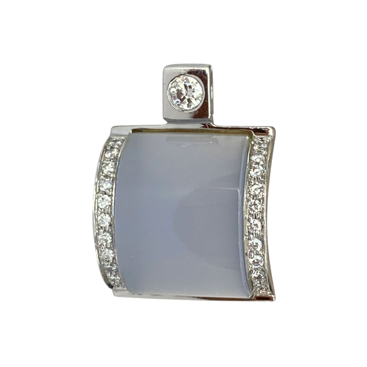 18 Karat White Gold Diamond Pendant and Chalcedony