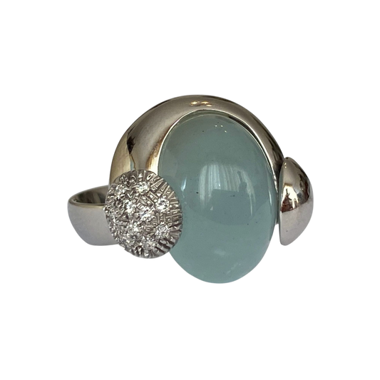 Talento Italiano 18K White Gold Fashion Ring with Cabochon Aquamarine & Diamonds