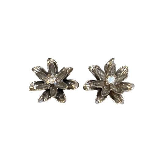 Vintage White Gold Rosette Diamond Earrings – A Timeless Elegance