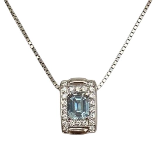White Gold Necklace with Aquamarine and Diamond Pendant