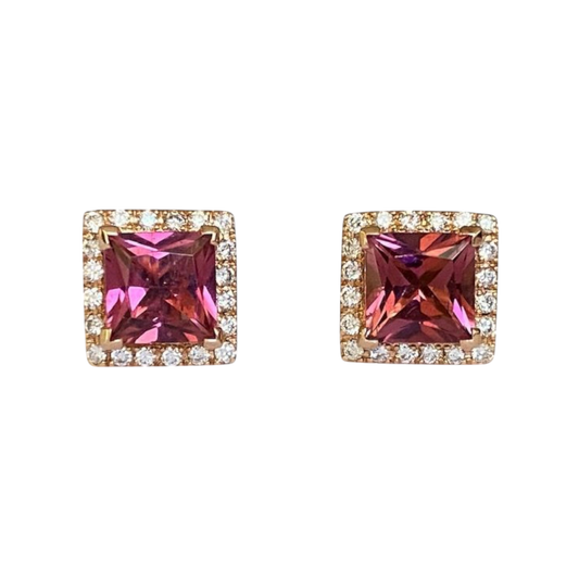 Fred Moes,Pink Gold Diamond Earrings with Tourmalines