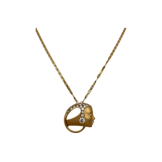 Carrera y Carrera Lady Head 18K Yellow Gold Diamond Pendant – A Masterpiece of Artistry and Elegance