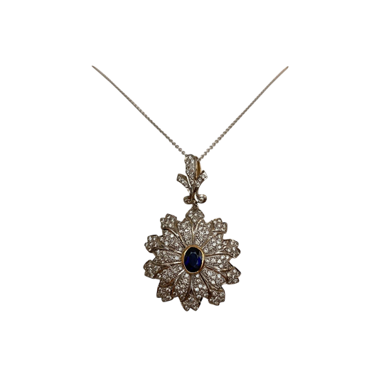 Vintage Gold Necklace with Pendant – 1.00 Ct Sapphire & Diamonds