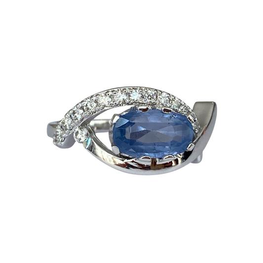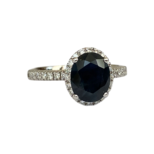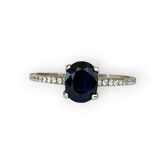 18 Kt. White Gold engagement Ring with 1.00 Carat Sapphire and Diamonds