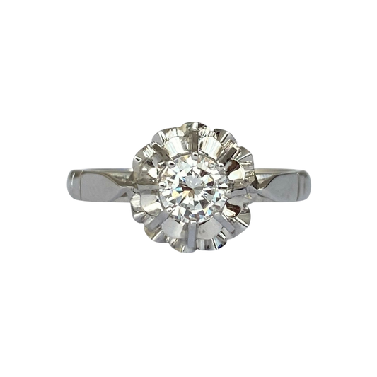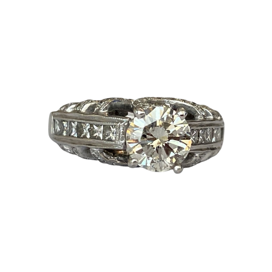 18K White Gold Vintage Solitaire Ring with 1.20 Ct Brilliant Cut Diamond & Additional Diamonds