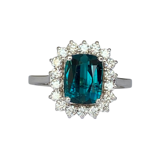 Certified 2.00 Carat Lagoon Tourmaline & Diamond Cocktail Ring in 18 kt white gold