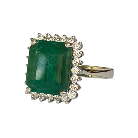 Certified 6.11 Carat Emerald & Diamond Cocktail Ring in 18K White Gold