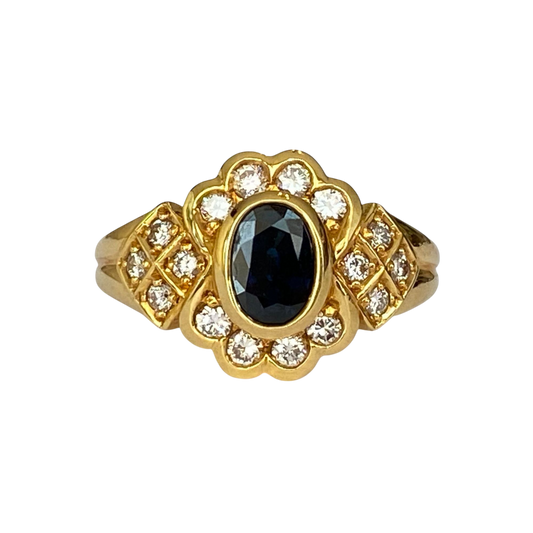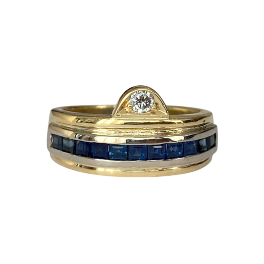 18K Yellow Gold Band Ring with Sapphires & Diamond