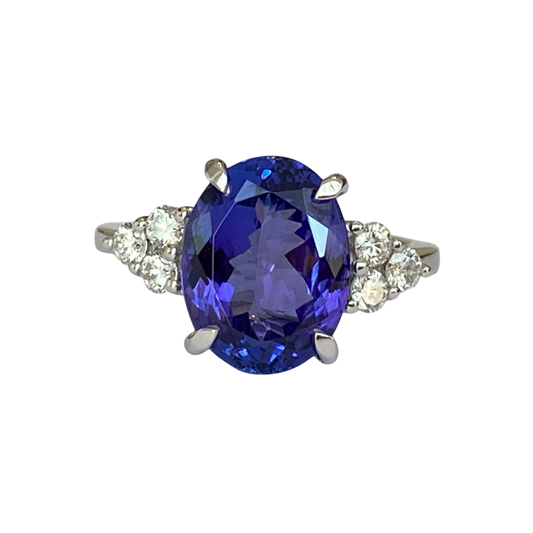 18K White Gold 6.00 ct Tanzanite & Diamond Cocktail Ring
