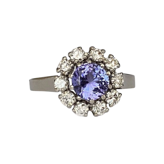 18K Vintage White Gold Rosette Diamond Ring with 0.90 Ct Tanzanite