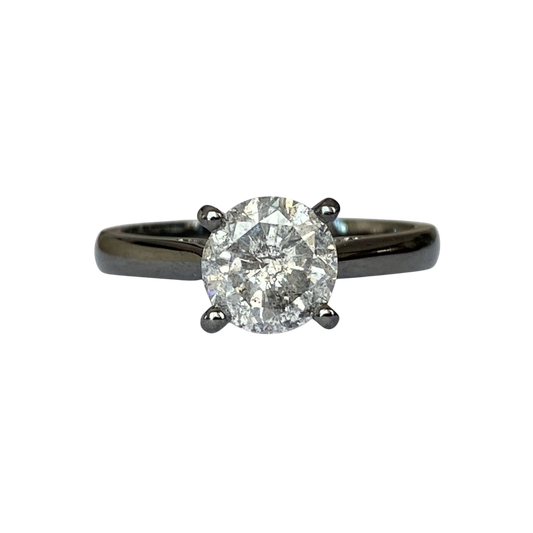 18K White Gold Black Rhodium Solitaire Ring with 1.66 Ct Salt & Pepper Diamond